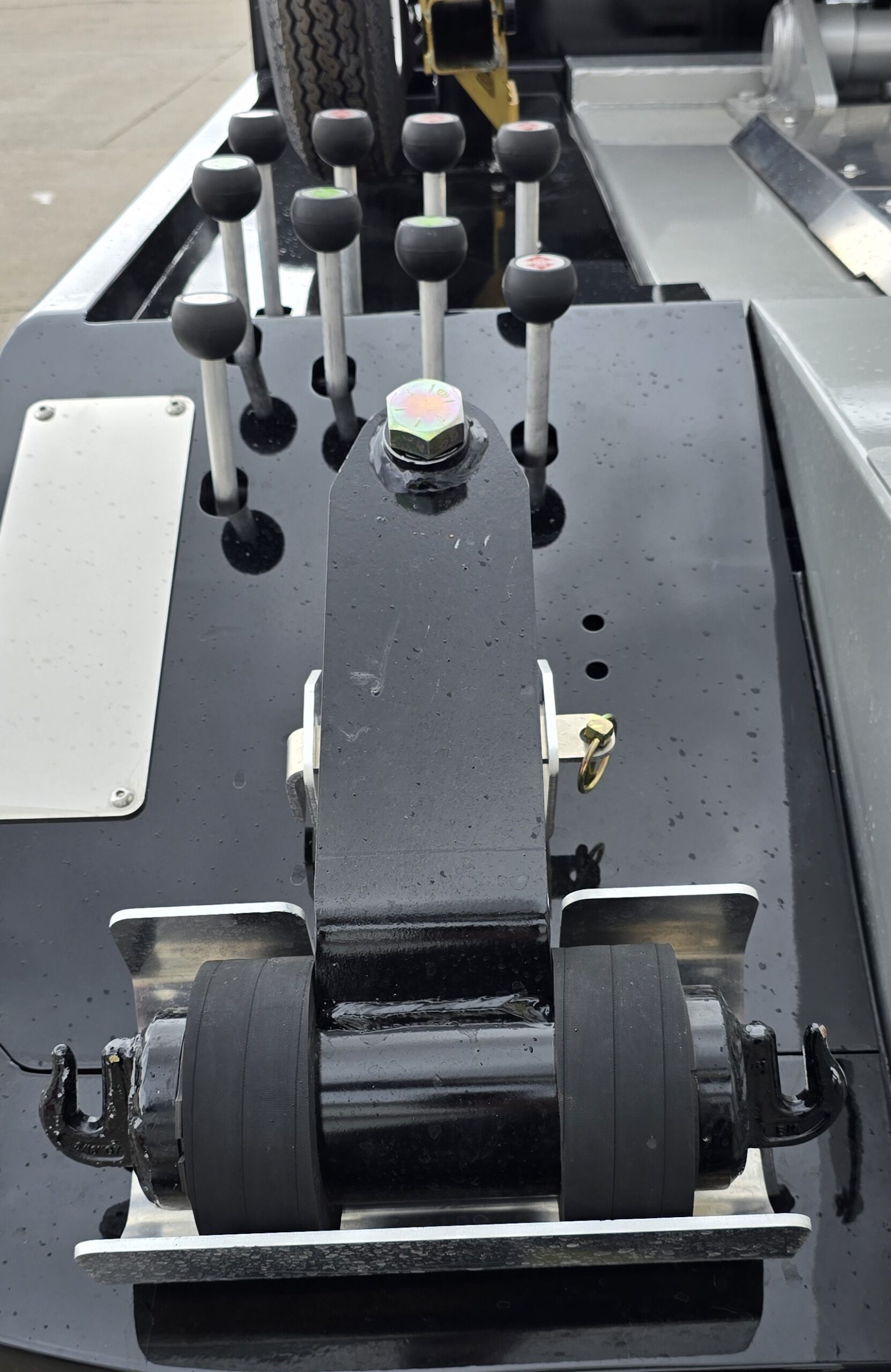 Steel Deck,2×2‘ Corten Tube Crossmembers on 8” Centers, Floor Level Rolled Formed Sides with Punched Stake Pockets, Right & Left Chain Trays, Safety Chains, (2 front, 2 rear), Painted in Black Acrylic Enamel, Left & Right Side Illuminated Controls, Federal Standard 108 LED Lighting, 8,000 Lb. Hydraulic